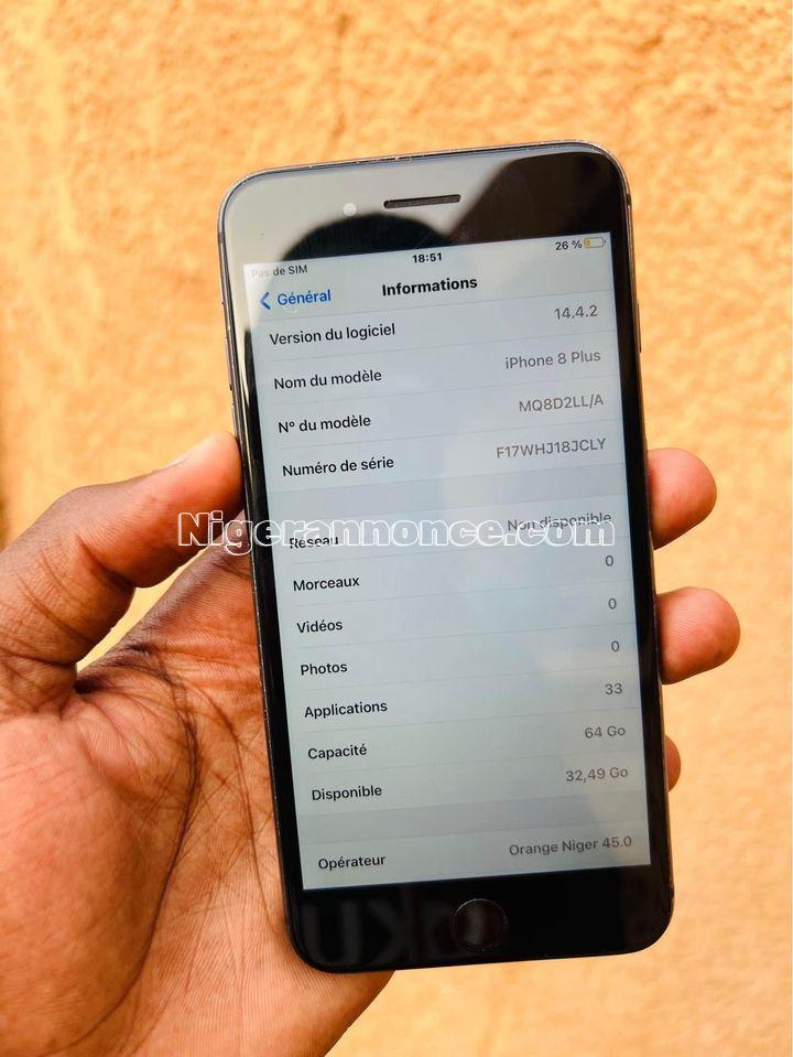 IPHONE 8PLUS 64G PROPRE EMPREINTE BIEN 👍 BATTERIE 100% PRIX : 50MILLE TROC POSSIBLE. 97372191 // 84352439