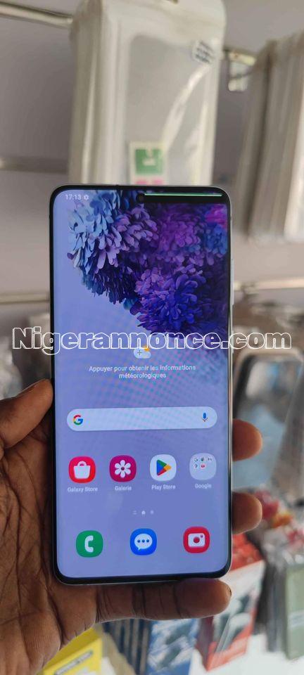 SAMSUNG GALAXY S20+ ÉTAT NEUF SANS FISSURE PETITE TÂCHE DANS L'ÉCRAN CÔTÉ DROITE EN HAUT SINON MARCHE 5/5 AVEC CARTON COMME ACCESSOIRES.